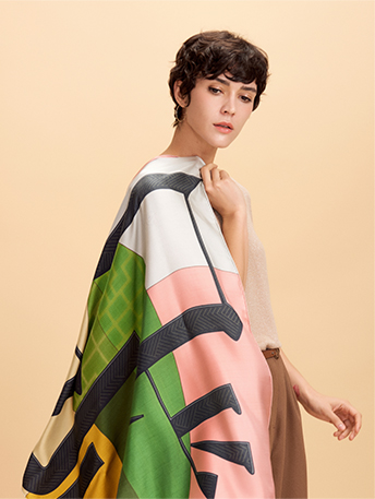 萃選中國文字取其形韻之美,重新以當代時尚色彩演化,跳脫傳統絲巾的設計舊白。這款絲巾,兼具時尚感與文化美感,給人以美的享受。