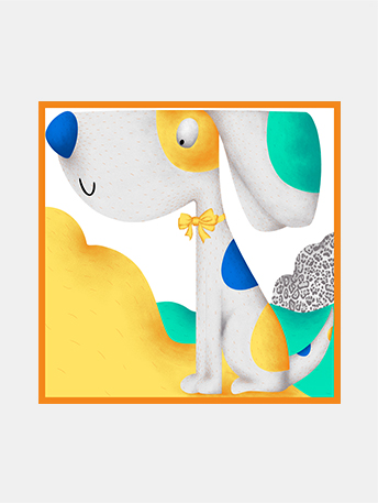 卡通斑點狗狗的形象可愛呆萌,他在最喜歡的骨頭山上歡快的玩耍,留下可愛的小足印。添加的短線讓畫面更有立體感,律動十足。呆萌可人的圖案,明亮活潑的配色,很適合小朋友。